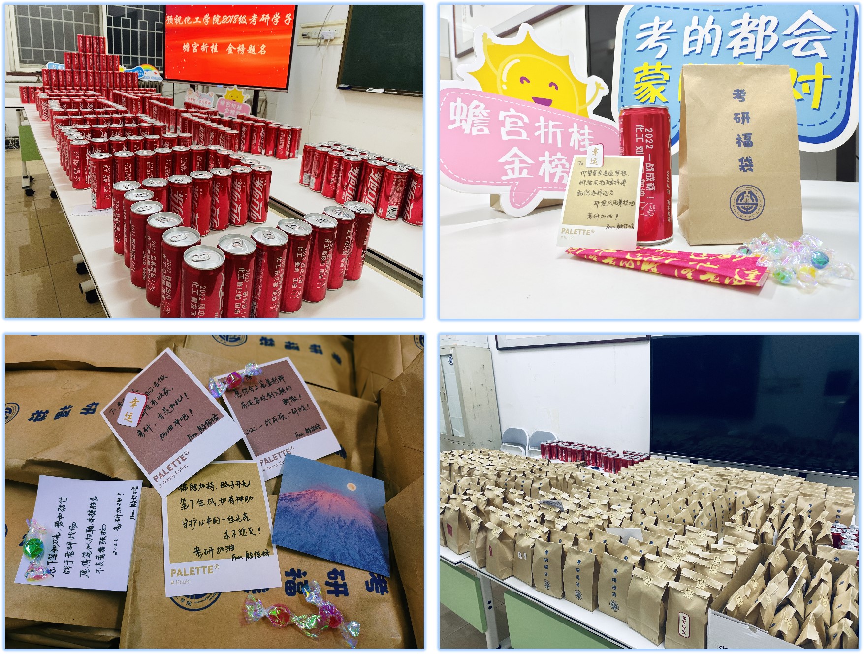 “研”路漫漫,筑梦启航。化工学院党政领导、班主任代表及全体专兼职辅导员深入教室、宿舍,共同为400余名考研学子加油打气,送去温暖祝福与专属惊喜。老师们与同学们亲切交谈,并结合学生的复习情况有针对性地提出冲刺备考建议,鼓励同学们要坚定必胜信念,做好个人防护,做到诚信考试,弘扬优良学风。走访期间,所有老师为考研学子送上专属“惊喜福袋”,寓意“福气满满”、“袋你上岸”。带给同学们一份真挚祝福、一路温暖陪伴。
