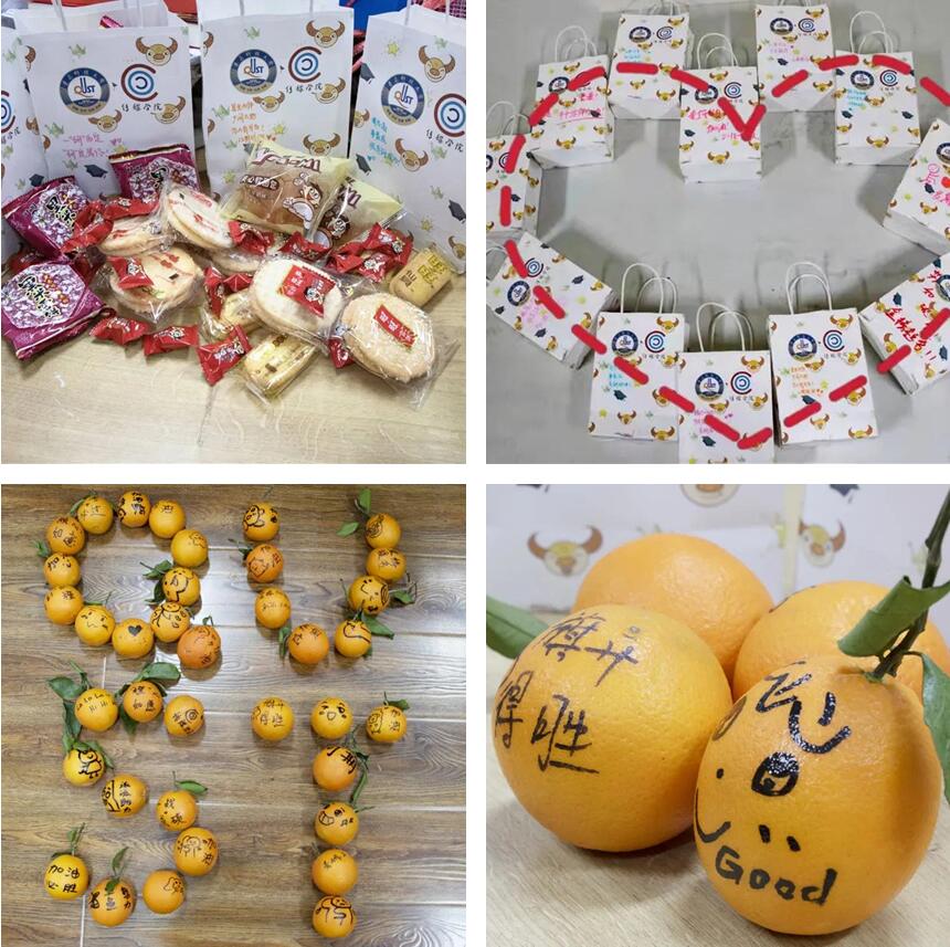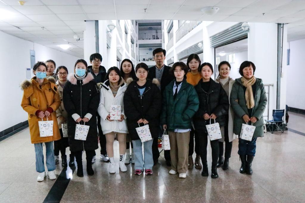 老师们携带礼物,带领全体人员来到了弘毅楼和宿舍楼,为考研同学送上考研小礼物,并详细问候同学们的学习情况和生活状况。