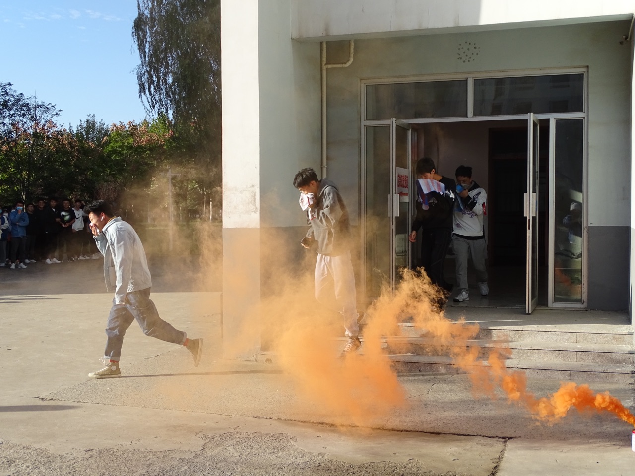本次消防演练包括消防宣传、消防疏散演习、模拟灭火培训等三个部分。在消防宣传环节,详细向参演师生讲解了宿舍火灾发生成因以及初期火灾扑救、日常防火措施、火灾逃生急救等消防知识。消防疏散演习环节,指挥组、初起火灾应急处理组、报警组、疏散组、灭火组等各其职,烟雾弹点燃后,南苑2号楼宿管员第一时间打开疏散通道,在消防志愿者协会同学引导下,宿舍内所有学生用湿毛巾捂住口鼻,弯腰,紧张有序疏散至楼外安全空地。