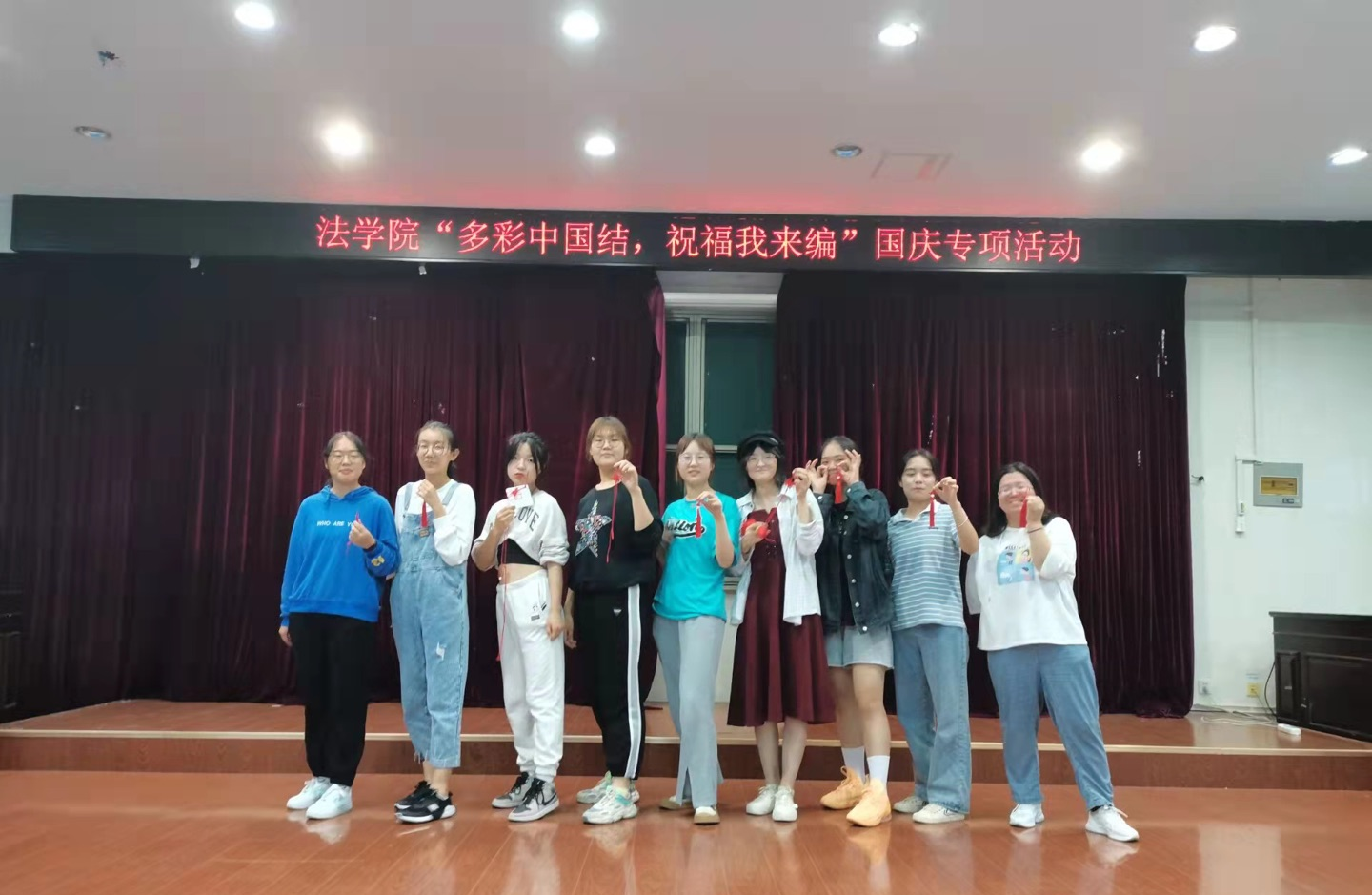 法学院举办以“怀崇法之心,赞祖国伟大”为主题的国庆系列活动为祖国庆生。包括我与祖国合个影、诗赋中国、国韵知识线上答题、手工制作中国结等活动,让学生亲身感受到了祖国深厚的文化底蕴与丰富的历史内涵。