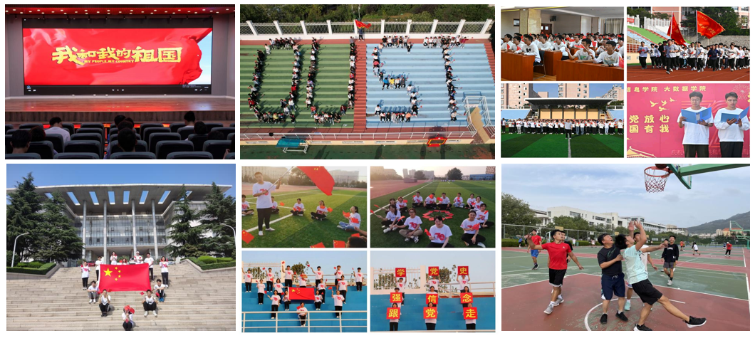 信息学院、大数据学院以体育强国、文化强国、人才强国、教育强国为主线,开展“共庆华诞,强国有我”庆国庆系列活动,包括“健跑迎国庆,体改我先行”活动“歌唱祖国”快闪、辅导员领诵《少年中国说》及编程赛等内容,突出学院学科特色。