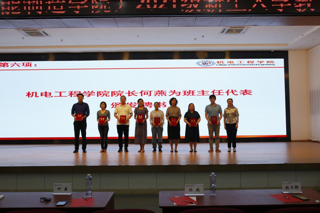 会上,何燕为新生班主任代表颁发聘书,张斌宣读《关于聘任伟德国际1949官网机电工程学院2021级本科生班主任的决定》,李剑光宣读《关于聘任伟德国际1949官网机电工程学院2021级本科生领航学长的决定》。