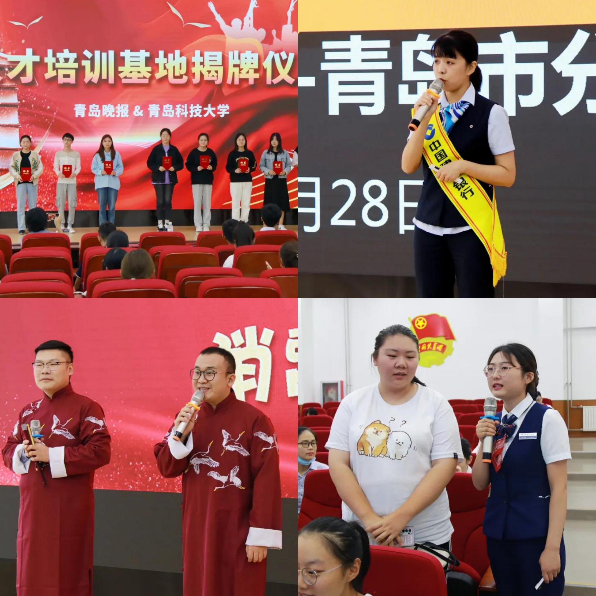 928日下午,传媒学院联合青岛晚报及多家银行在崂山校区北苑报告厅举办“警惕金融诈骗,共创和谐校园”——金融知识进校园活动暨人才培养基地揭牌仪式。青岛市银行业协会秘书长徐宁,青岛市金融消费权益保护协会秘书长肖珍凤,传媒学院党总支书记刘志国、副院长王小环,青岛晚报执行总编辑于吉争、运营部副主任宋群,青岛掌控传媒副总编陈小宁出席此次活动。传媒学院近百名学生参加活动。