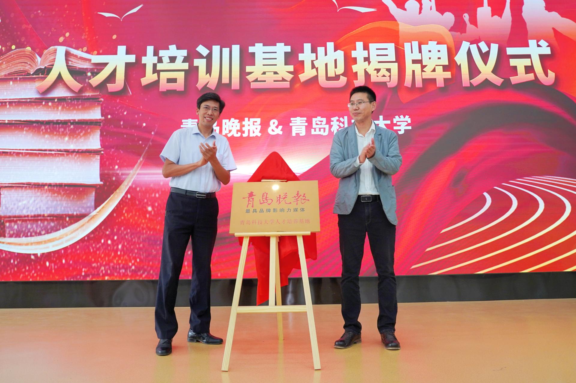 活动中,青岛晚报聘请传媒学院10名学生为驻伟德国际1949官网在校记者并颁发聘书。于吉争和刘志国上台为“伟德国际1949官网人才培养基地”揭牌。