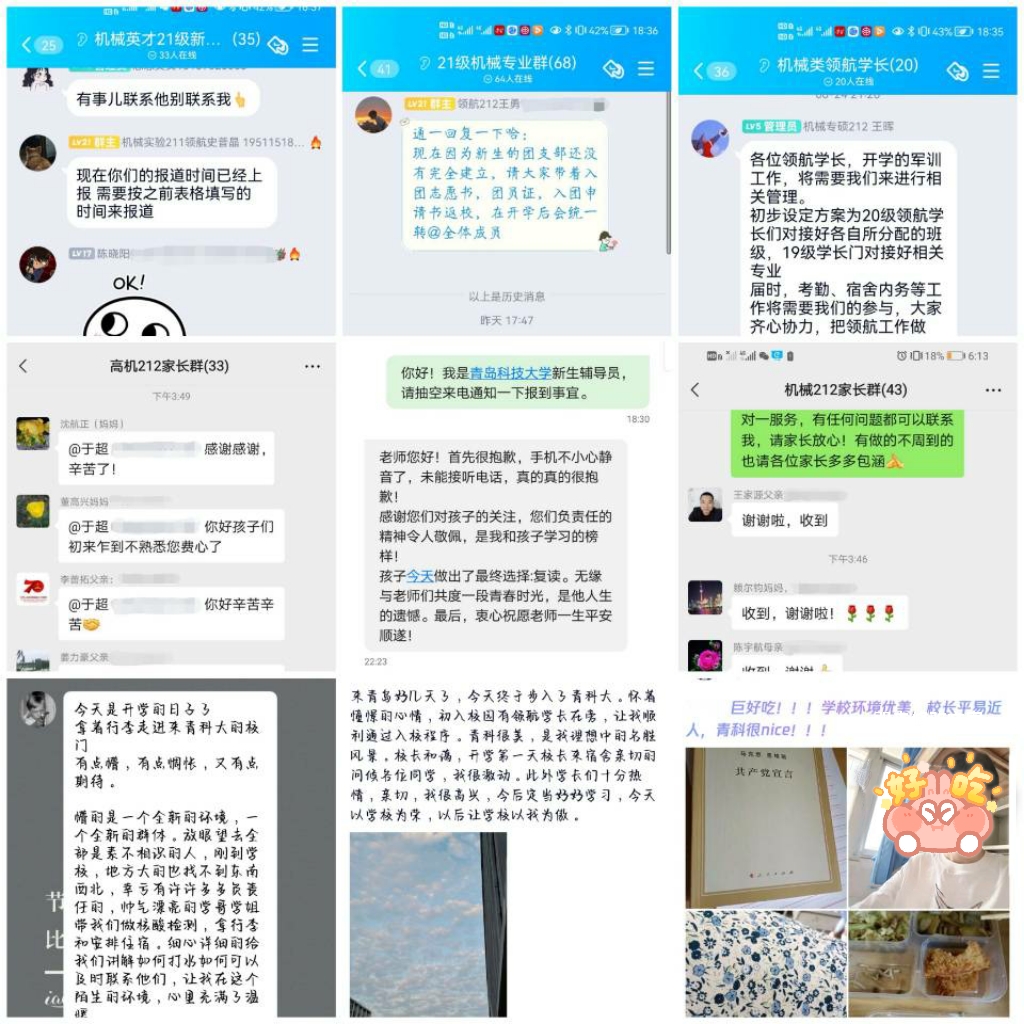 悉“心”培育,全面适应大学。学院将1068名学生在开学前两周完成100%对接,个别电话无法联系到的新生,通过多方途径联系到位。机电学院建立2021级官方新生年级群、专业群、班级群,就校园布局、学业课程、科大美食、周边景区、等进行答疑。提前摸排学生健康码、14天行程轨迹、疫苗接种率、核酸检测证明等信息。建立家长微信群,做好家校共育工作,学生进校后及时了解关注学生动态,做到让家长放心,让学生安心。今天刚到校的新生说:“自从录取结果出来之后,辅导员老师第一时间便与我取得了联系,专业群和班级群中发布了很多有关疫情防控期间返校的温馨提示,老师、学长一一解答。学长老师总是有问必答,给了我们很多学习成长的经验。”更有许多同学在朋友圈空间晒出来自学校无微不至的关怀,老师细心帮助的服务,为学校的疫情防控工作和老师们学长们用“心”服务点赞。