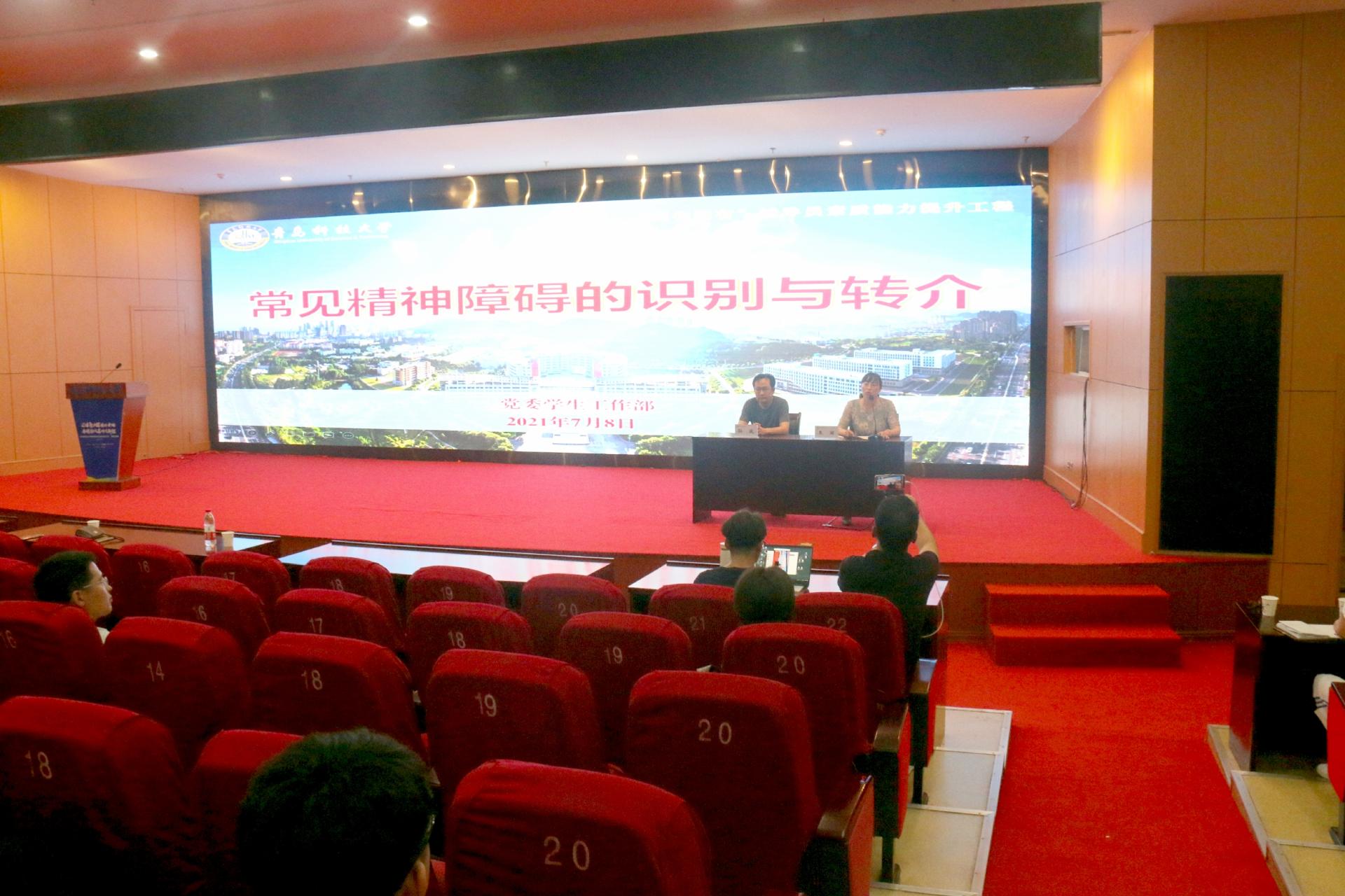 为进一步贯彻落实《高等学校学生心理健康教育指导纲要》、《高校思想政治工作质量提升工程实施纲要》等文件精神,健全心理危机预防和快速反应机制,切实提升辅导员对于心理问题的早期识别和危机预警能力,7月8日下午,学校邀请青岛市精神卫生中心副主任医师孙波专题培训。培训由党委学生工作部副部长王丽主持。