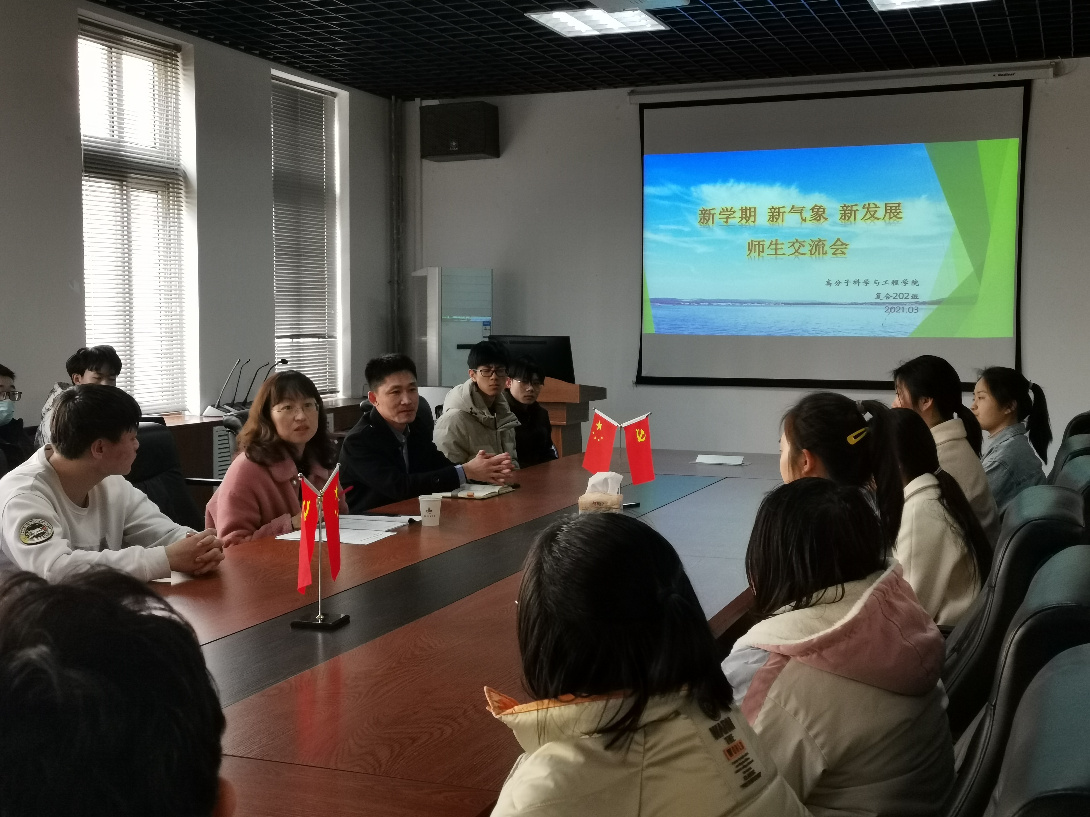 为积极响应学校机关处级干部联系学生班级通知精神,进一步促进良好学风建设,39日下午,高分子学院复合202班“新学期 新气象 新发展”师生交流会在学院403会议室举行,党委学生工作部副部长王丽老师参加本次交流会。