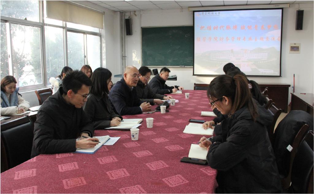 1月12日,校长陈克正来到经管学院,与联系班级2019级财务管理专业全体同学开展“把握时代脉搏 赋能青春梦想”主题座谈会,和同学们进行亲切交流。经管学院党委书记李德成及全体辅导员参加本次活动。