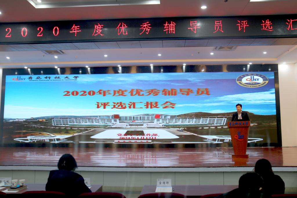 进一步加强辅导员队伍建设选树典型,激励先进,1月12午,学校在崂山校区第报告厅举行2020年度优秀辅导员评选汇报会。学校学生工作委员会成员,学生处各科室、中心负责人以及全体专职辅导员参加了汇报会。