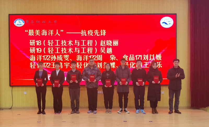 学院党总支书记周宪锋为2020年度新发展党员代表发放学习资料。与会全体党员重温入党誓词。会议表彰了学院“最美海洋人”学生获奖者,周宪锋、李昉、王新萍分别为获得抗疫先锋、学习标兵、科创之星荣誉称号的获奖者颁发证书。