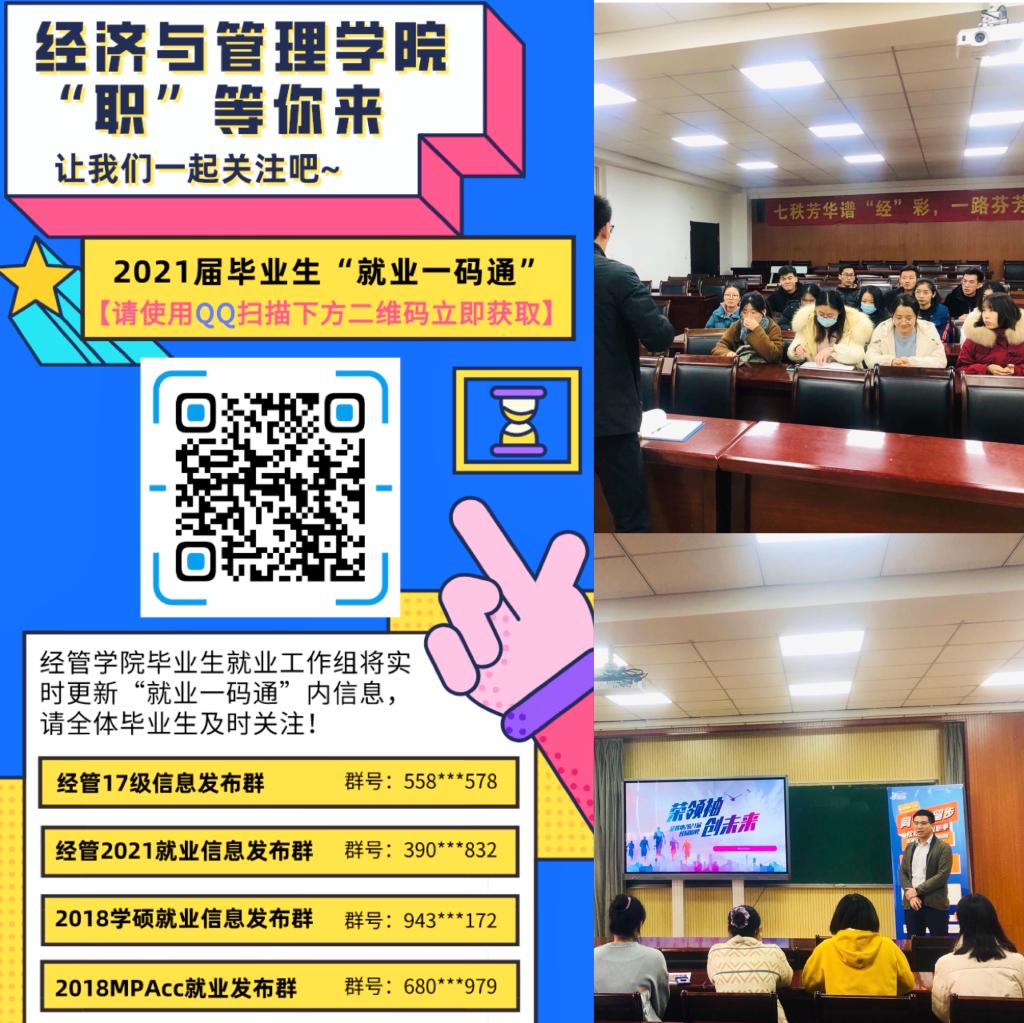 为更好地促进2021届毕业生升学深造、求职就业,经管学院自11月起,着力构建“学院后盾、年级助力、学生融合”一以贯之的“大就业”管理格局,以“精准识别、精准指导、精准保障、精准帮扶”为原则,精准打造“考研+就业”全矩阵,多措并举助力广大毕业生以昂扬斗志克服疫情影响,直面就业挑战。