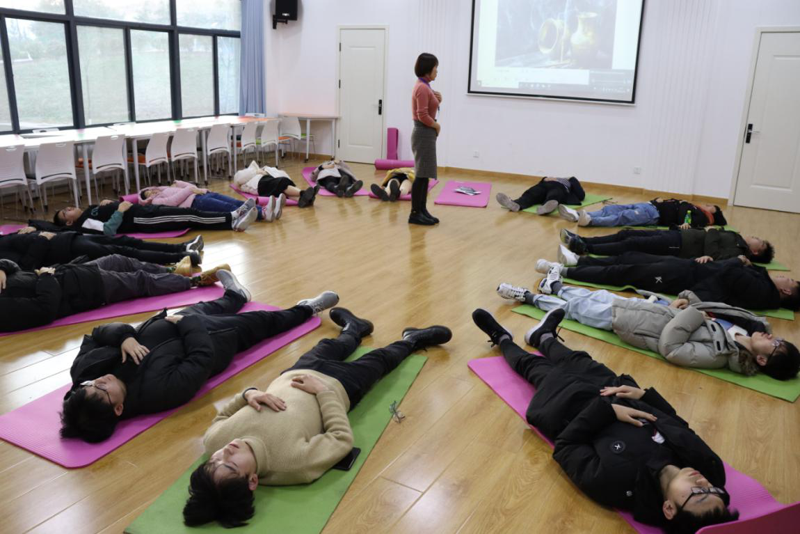 李海玲老师以“压力为何物”这一话题展开,从科学的角度系统的阐述了压力的定义,介绍了同学们压力的产生机制,强调建立良好心理品质的重要性;随后,李海玲老师组织同学们进行心理减压游戏——滚雪球,同学们依次介绍自己及自己考研目标院校并由下一个同学说出之前所有同学的信息;通过游戏引入减压的方法——STOP,带领大家了解并掌握这种减压方法,同学们通过肢体、呼吸放松进一步达到心理放松,体验释放压力的感觉。