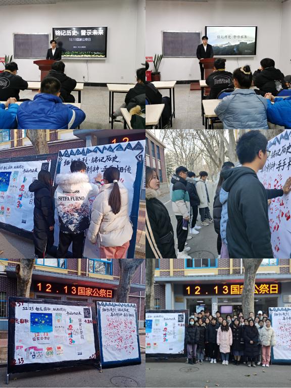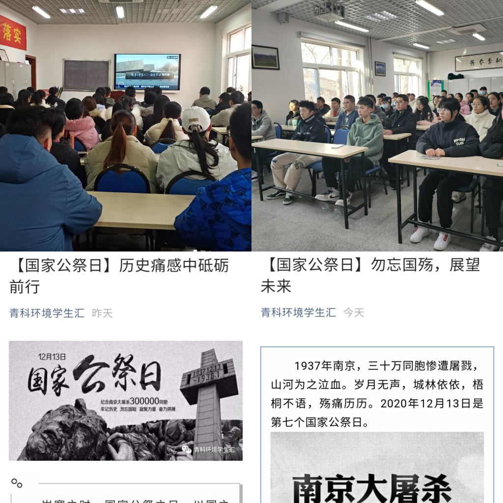 为深切悼念南京大屠杀中无辜死难者,缅怀为中国人民抗战胜利献出生命的革命先辈,激发学生爱国情感,弘扬爱国主义精神,加强爱国主义教育,环境学院开展南京大屠杀死难者国家公祭日纪念活动。