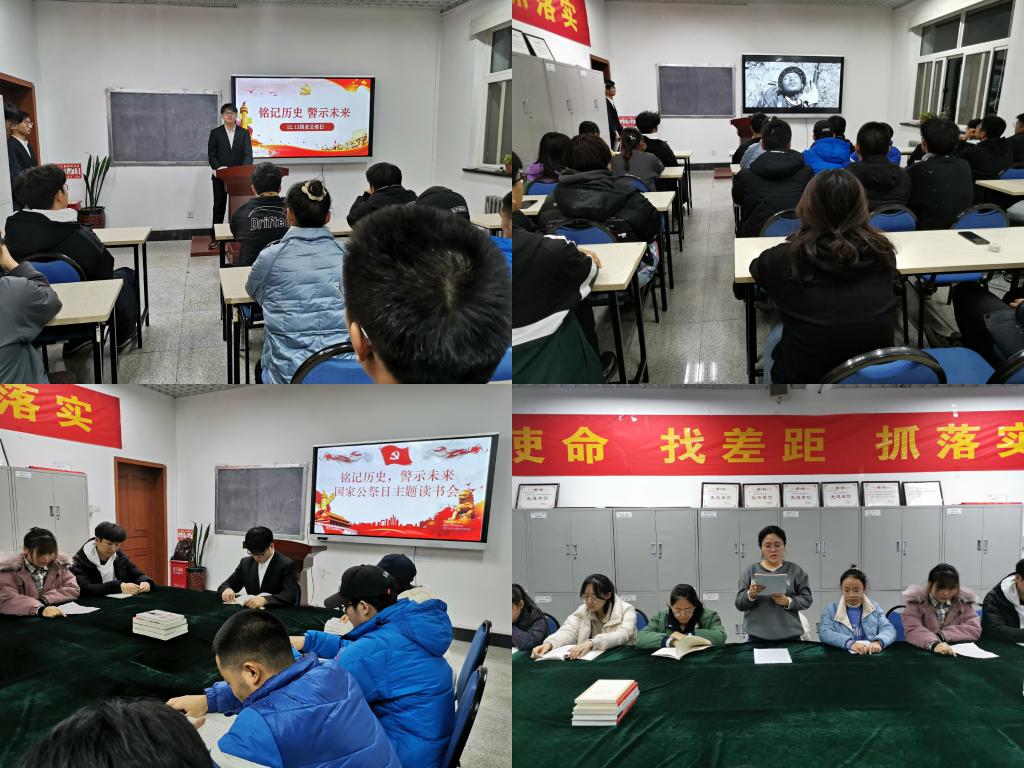 以尊崇之心珍视和平,以民族之力矢志复兴。学院组织集体观看纪录影片《南京大屠杀》和爱国主义教育题材影片《南京!南京!》。观看过程中,那一幕幕震人心魄的画面令在场学生心情沉重、眼眶湿润。同时,学院开展“勿忘国耻,铭记历史”红色读书交流会,让学生牢记落后就要挨打的沉痛教训,树立远大理想,早日成才报国。