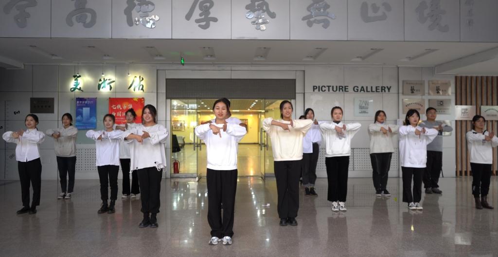 学院充分结合专业特色,发挥专业优势,积极组织音乐系学生为以爱之名,生命至上”手语操定制参赛主题音乐,亲自录制《在一起》歌曲,并以疫情期间学院教师原创MV歌曲《武汉,加油》为演绎基础,生动打造《心语在‘艺’起》视频背景。在音乐系学生二次谱曲、弹奏以及录制剪辑的同时,学院依托“艺沟通”心理访谈室和心理工作站组织参赛同学于学校心理健康教育与咨询中心美术馆、艺术大厅、操场等多场地进行视频拍摄,以独特的视角构思、丰富的表现形式,强化了新时代艺院学子的社会责任感和爱国情怀。