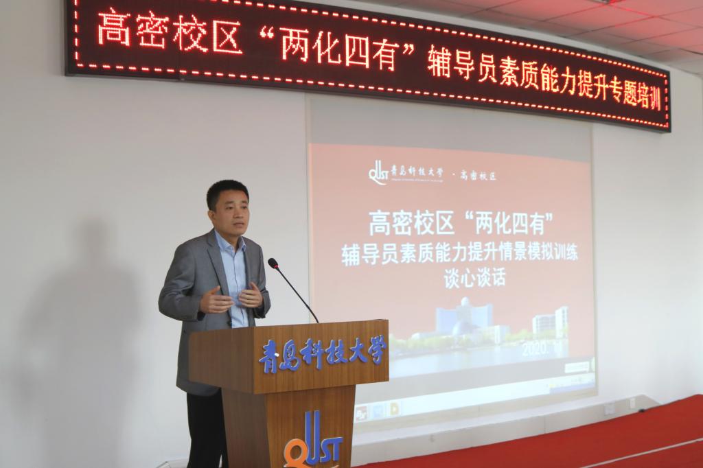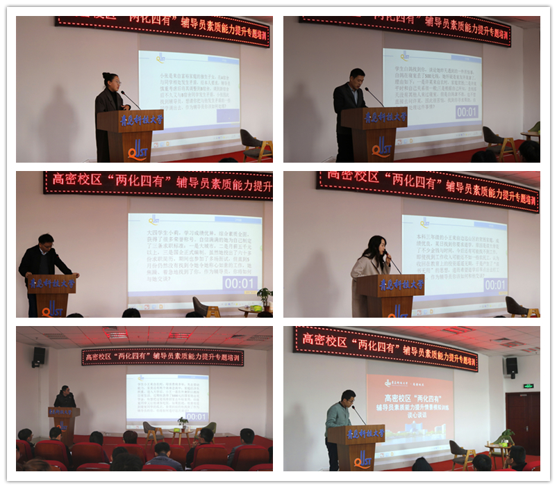11月11日,高密校区“两化四有”辅导员素质能力提升谈心谈话情景模拟比赛在东报告厅举行。高密校区党委书记王建民出席并总结讲话。