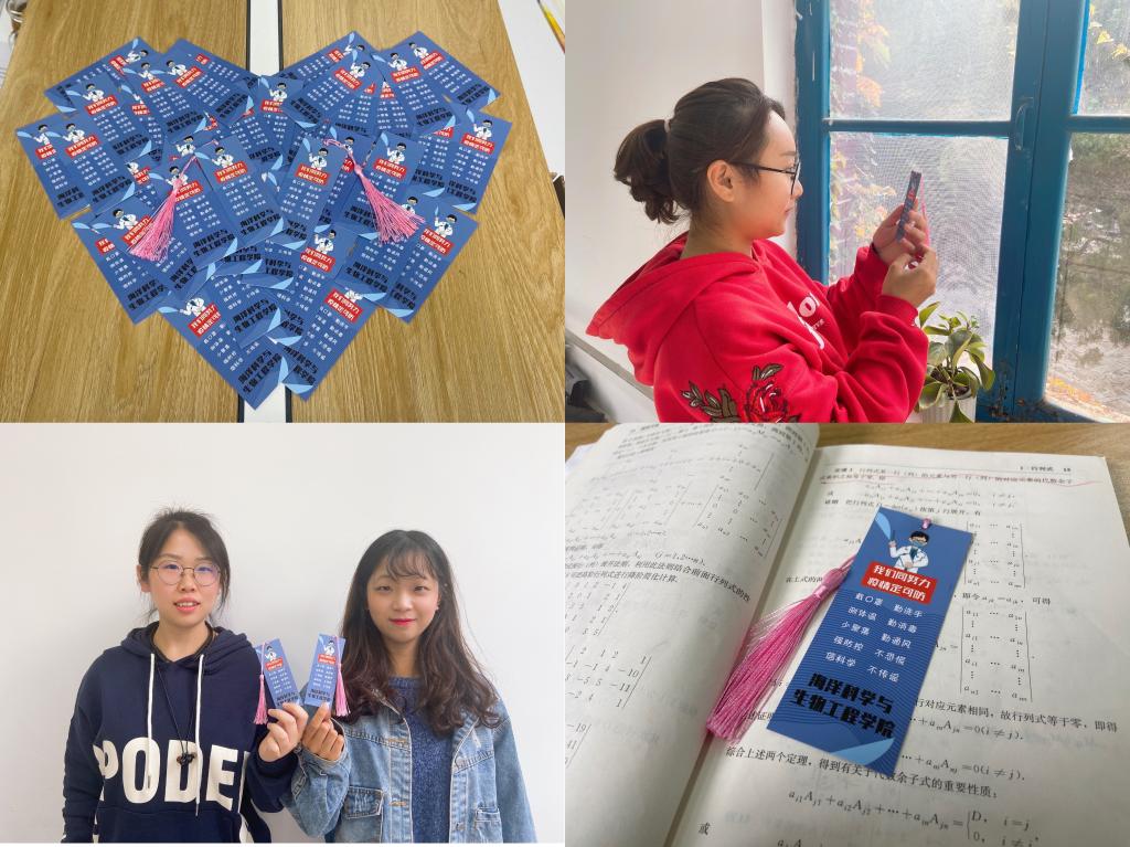 发放疫情防控指南书签。学院为每位学生制作了2个疫情防控指南版书签,内容为“戴口罩、勤洗手、测体温、勤消毒、少聚集、勤通风、强防控、不恐慌、信科学、不传谣”,书签方便携带,内容朗朗上口,力求提高学生疫情防控意识入脑入心。
