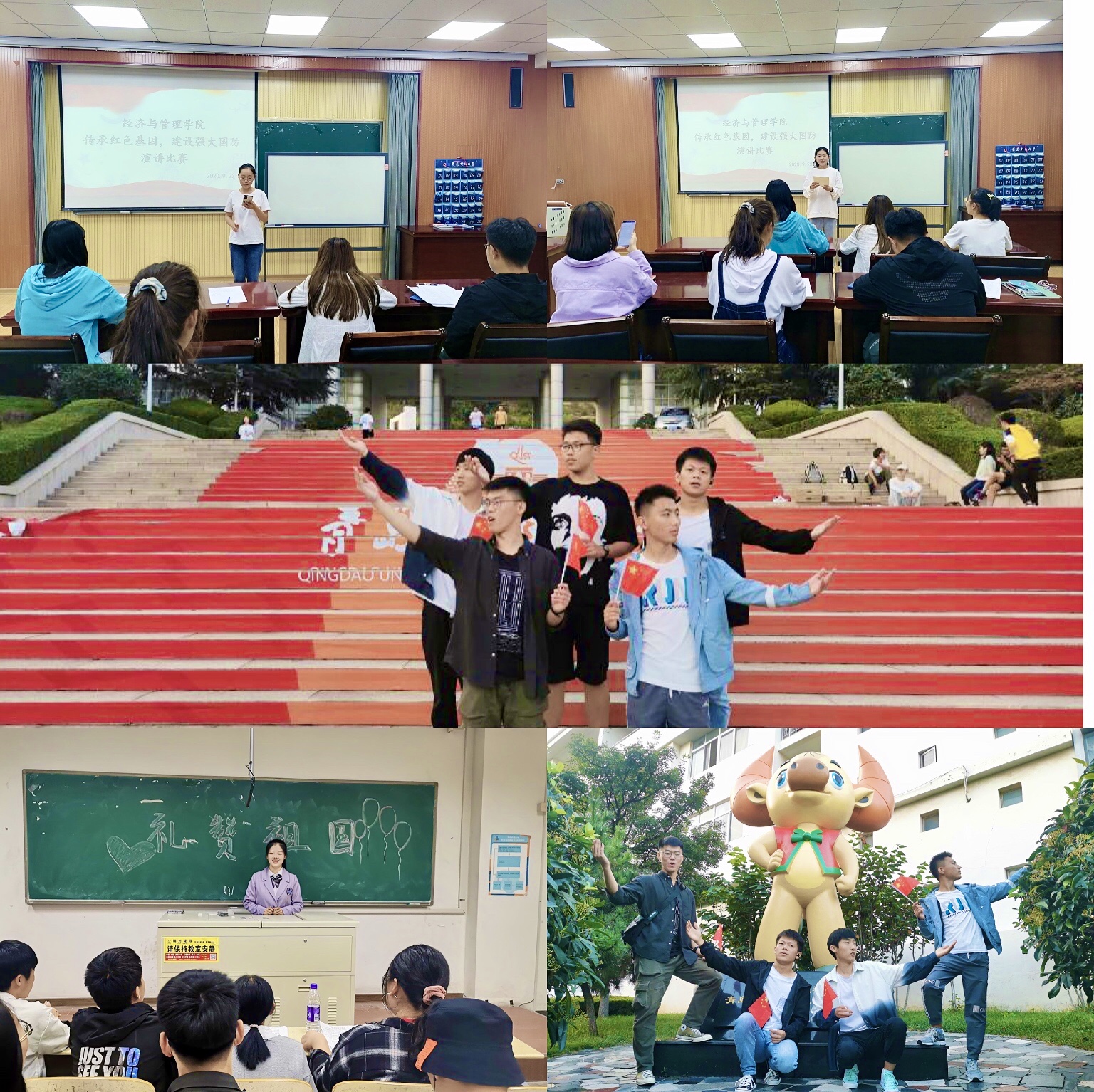 学院组织开展“家乡变化有我在,共庆华诞71载”主题座谈会,来自新疆、贵州、海南的同学们忆家乡、谈变化、话发展、赞祖国,在实现全面建成小康社会的目标之际,以切身感受赞叹祖国伟大发展。同时,学院组织“我身边的祖国建设者们”主题分享活动,“青春起航、筑梦花开”主题征文等活动,鼓励全院学生在严肃肃穆的仪式中接受“沉浸式”精神洗礼,树立积极的人生价值观。除此之外,经管学院以学生为主体,在线上平台开展“四史学习”知识竞赛、线下开展“担家国使命、颂‘经’彩华章”演讲比赛,在实践中“固初心、悟原理、启智慧”,全面提升学生素养,形成热爱伟大祖国、礼赞美好时代的热烈氛围。