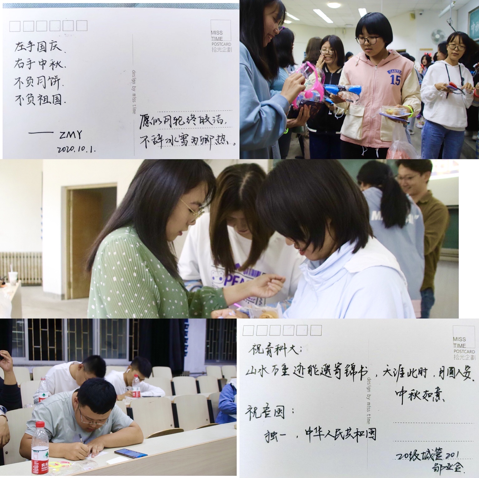 学院以“随风寄相思”为主题,开展明信片互递活动。字字传递真情,句句书写真心,“祖国快乐,月亮快乐,你也快乐”;“十月的好运拍了拍你”;“平安喜乐,万事胜意”等等花式祝福,让身在异乡的学子感受到了经管大家庭的温馨关怀。