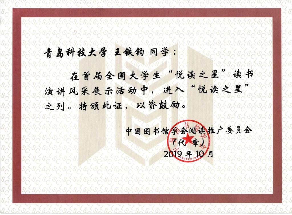 【学院传真】自动化学院学子王铁钧获评首届全国大学生读书演讲风采展示“悦读之星”