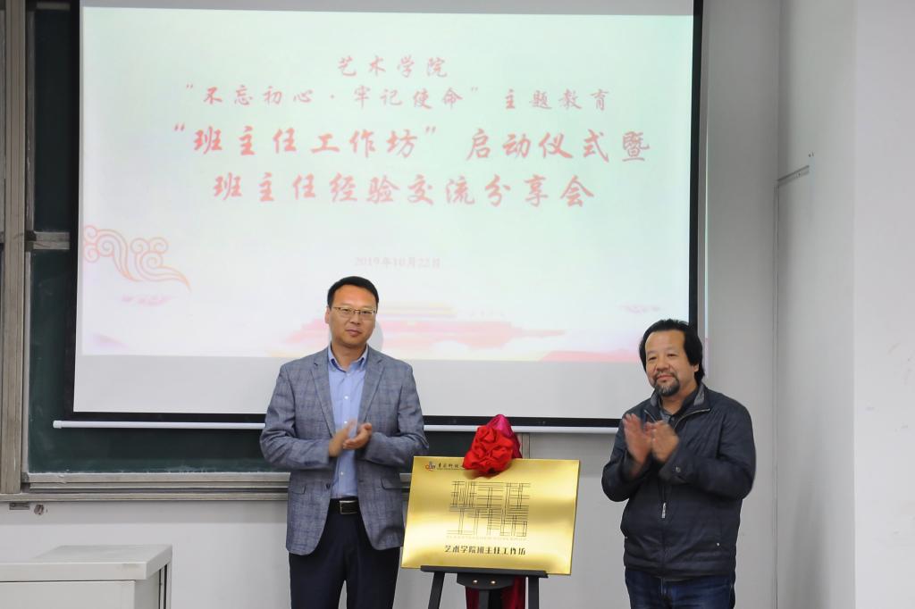 启动仪式上,贺炜与艺术学院院长李宏文共同为艺术学院“班主任工作坊”揭牌。贺炜对艺术学院创新班主任工作做法表示赞赏,提出要落实“班主任工作坊”制度条例,使其成为班主任工作的指挥棒,充分尊重学生主体地位,努力培养学生社会责任感、创新精神和实践能力。艺术学院党总支书记许桂锋指出,艺术学院启动“班主任工作坊”是学院积极落实“全员育人”“协同育人”的有效途径,也是创新“不忘初心、牢记使命”主题教育形式,开展学生工作典型教育的有效方式。董华作为校十佳班主任代表,从专业教师做班主任的必要性、如何做好班主任工作以及经管学院班主任工作情况三个方面作了介绍。校十佳班主任艺术学院李艳艳从教育管理、学科竞赛、创新创业教育等方面介绍了工作经验。艺术学院副院长曲国先宣读了《艺术学院“班主任工作坊”实施细则》。艺术学院党总支副书记兼副院长刘名森就学院学生工作情况做了汇报。