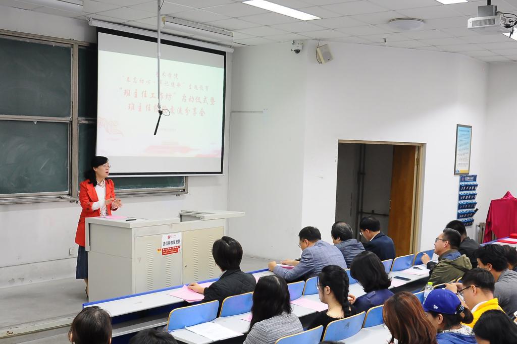 为进一步深入开展“不忘初心、牢记使命”主题教育,扎实推进先进典型专题教育学习,10月22日下午,艺术学院在弘毅楼E203教室召开“班主任工作坊”成立启动仪式。学生处副处长贺炜,经管学院副院长董华,艺术学院负责人及学院全体辅导员、班主任参加仪式。