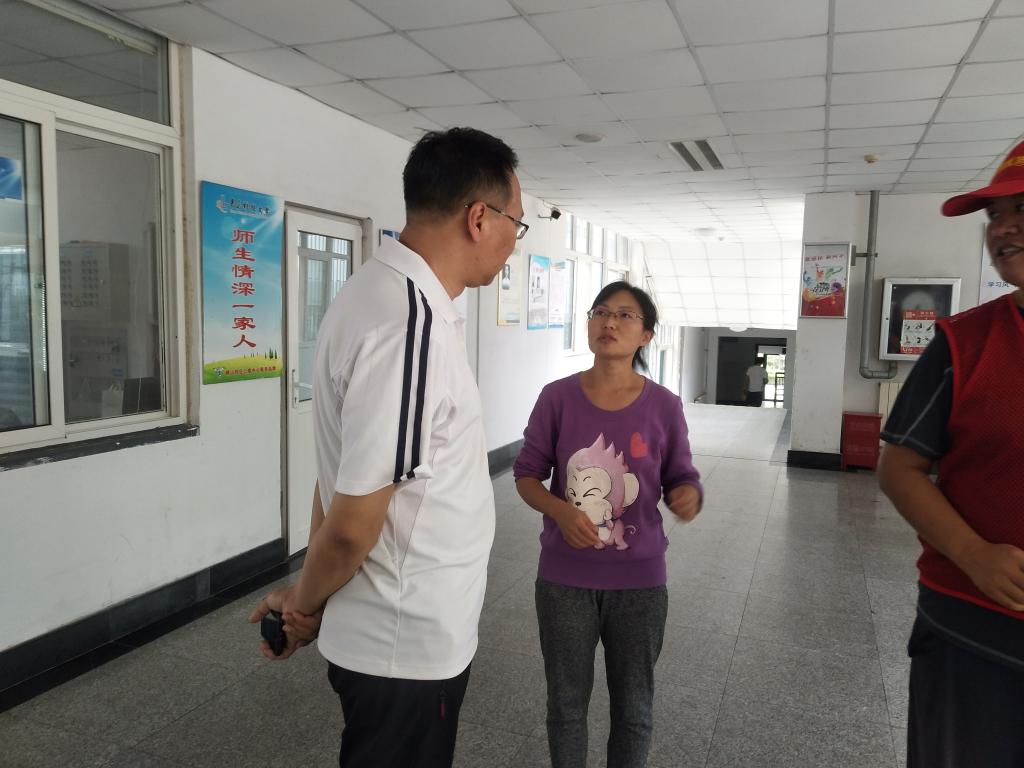 102日,学生处副处长贺炜和公寓中心办公室值班人员一起慰问了奋斗在一线岗位的管理室老师、维修和保洁人员,了解留校学生数量、生活设施是否正常使用、物业服务是否到位等详细工作,严格门禁和晚归登记制度,强调安全工作的重要性,并现场指出存在的不足,通知责任部门立刻落实改正。