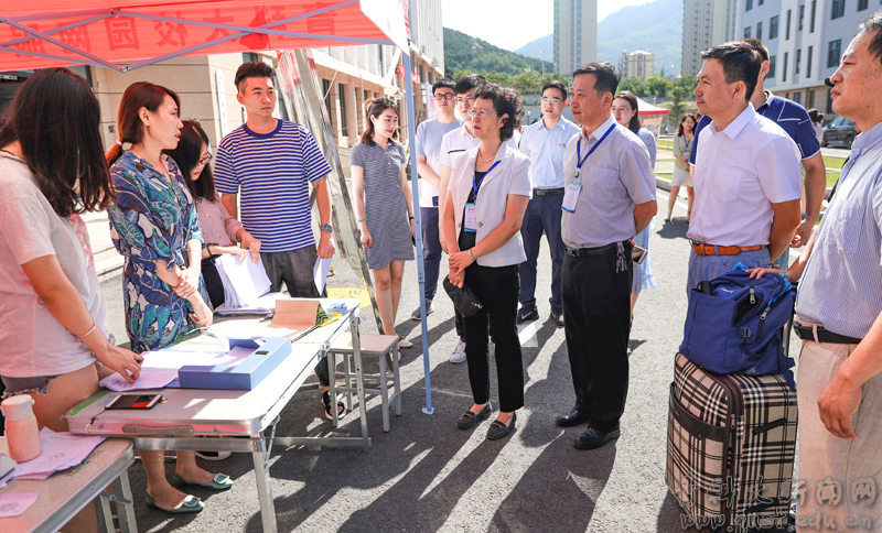 8月30日,天高云淡,金风送爽,伟德国际1949官网校园内人潮涌动、彩旗飘扬、横幅高挂,全体科大师生热烈欢迎来自全国各地的2019级新同学。校领导李庆领、张淑华、韦殿华、陈克正在相关职能部门负责人的陪同下,来到各学院迎新接待点,共同迎接新生入校。
