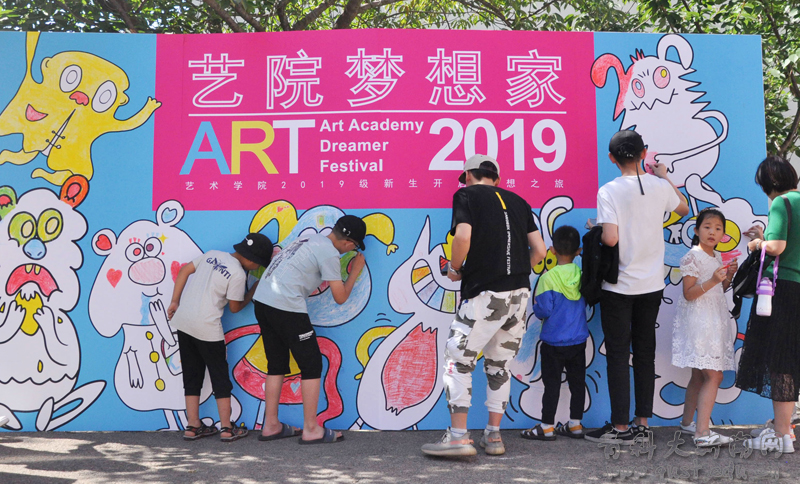 艺术学院本次迎新以“艺院梦想家”为主题,设立由学院党政领导、各系主任、分团委教师等全员参与的新生答疑区,制作新生梦想盒,绘亲情涂鸦墙,家长为其学生所学专业的公仔形象填充色彩,打造专属艺院的“家校共育”格局,为“四年不断线”的大思政教育助力。