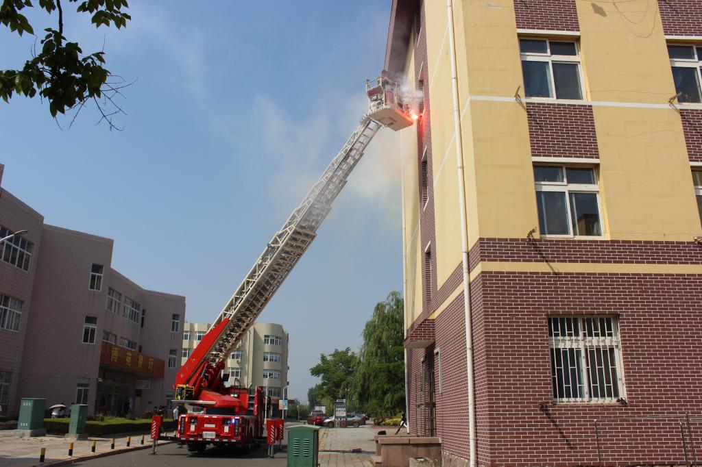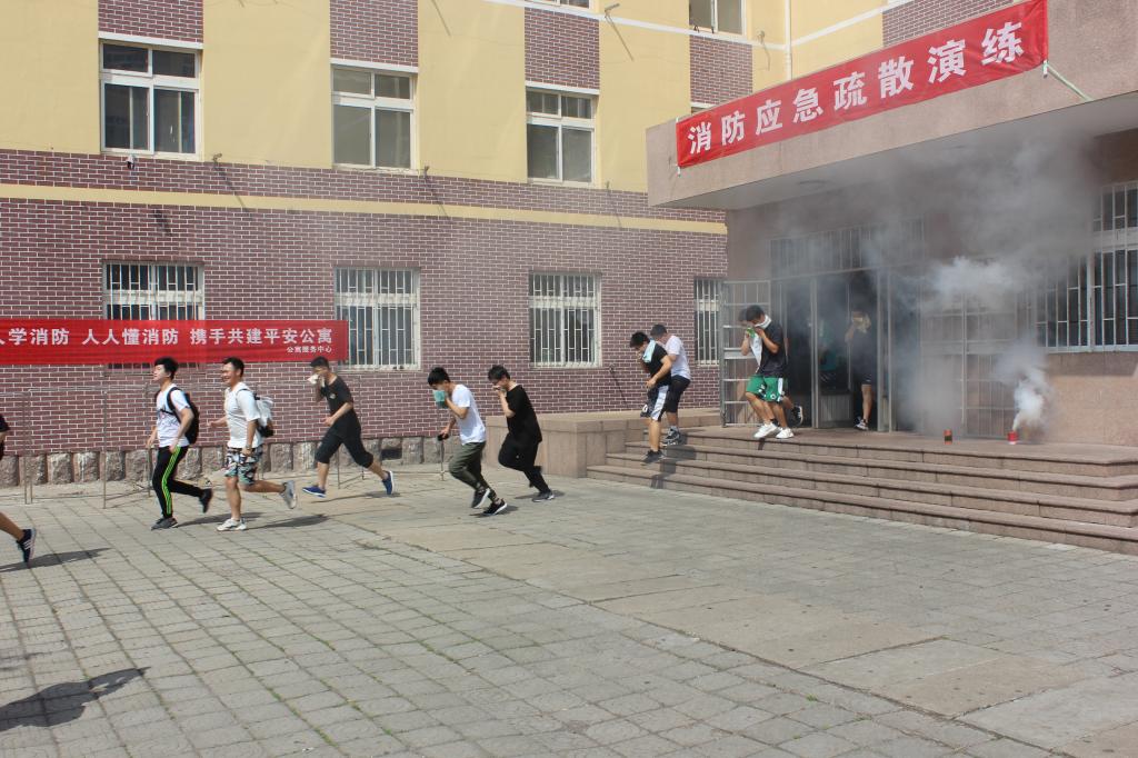 随着李勇校长下达开始指令,演练正式启动。宿舍内升起了滚滚浓烟,消防警报随即拉响,参与此次演练活动的部分高分子学院学生身着机简装、手捂湿毛巾,在辅导员、消防志愿者的引导下,迅速、有序地疏散到了楼前空旷地带。随后,接警赶到现场的消防官兵对楼上“着火点”进行喷水灭火,用消防登高梯将位于4层的被困人员救下,医疗组随即被救人员进行全面检查。整个活动按照预定方案紧张有序开展展现了学校师生较好的消防应急逃生素养