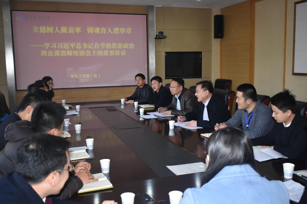 3月22日上午,辅导员队伍学习贯彻习近平总书记在学校思想政治理论课教师座谈会上的重要讲话精神座谈会,在四方校区行政楼第一会议室召开。学生处处长陈刚出席座谈会。会议由学生处副处长贺炜主持。