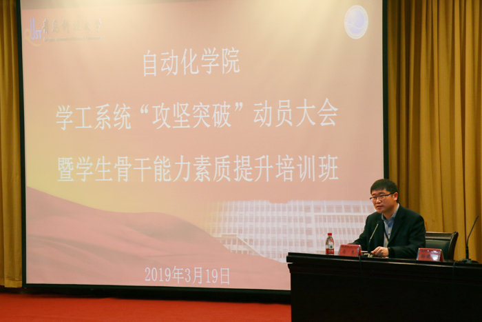 马寒在“攻坚突破”专题党课上指出,学校将今年确定为“攻坚突破年”,自动化学院学工系统应以等不起的危机感、慢不得的使命感、坐不住的责任感、停不下的紧迫感,全力做好学生工作攻坚突破。他对在座学生干部提出四点要求:一是加强学习、提高本领,做学生工作的领头雁;二是鼓足干劲、振奋精神,做学生工作的挑山工;三是转变作风、狠抓落实,做学生工作的狙击手;四是严明纪律、统一步调,画学生工作的同心圆。学生干部要全面提升素质能力,为学院学生工作提质增效、脱贫攻坚贡献自己的智慧和力量。