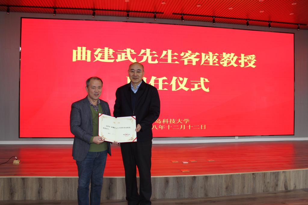 会前,陈克正为曲建武教授颁发了伟德国际1949官网客座教授、辅导员导师聘书。