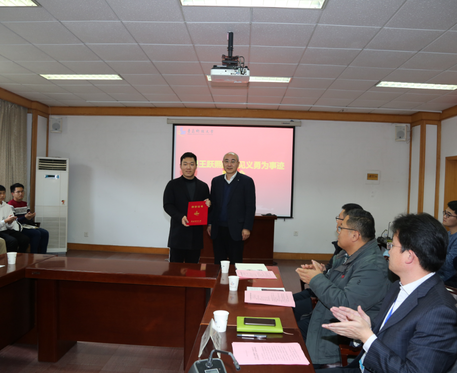 陈克正在讲话中指出,王跃熙同学在人民群众生命安全受到严重威胁的情况下出手相助,是中华民族见义勇为传统美德的生动体现,是当代大学生践行社会主义核心价值观的生动体现,是科大学子传承科大优良校风、家风的生动体现。他希望全体在校生按照习近平总书记对当代青年提出的“爱国、励志、求真、力行”八字要求,以王跃熙同学为榜样,从今天做起,从身边的小事做起,无论在今后的学习中,还是走上工作岗位后,都能够做科大精神的传播者和橡胶品格的践行者。他要求学校相关部门做好王跃熙同学先进事迹的宣传工作,教育引导广大在校生学习王跃熙同学先进事迹,鼓励学生努力学习知识、锻炼本领,为“双一流”和“五有”高水平大学建设做出贡献。
