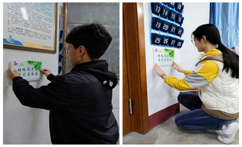 高分子学院学生投入到环保公益活动中,在四方校区各个教室开展“垃圾随手带,学习更自在”的文明标语张贴行动,倡导“环保从小事做起,从身边做起,从你我做起”,呼吁同学们随手将垃圾自行带离教室,告别不文明行为。