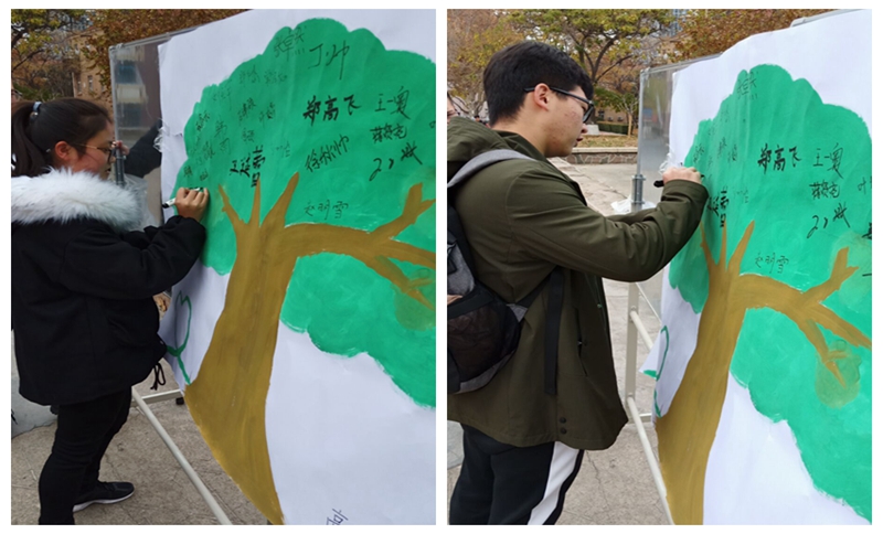 高分子学院塑料专业同学联合在四方校区小五四广场发起节能做表率环保携手行签名活动。同学们纷纷在宣传展板上签名,支持节能环保的生活态度通过转发以“节能环保”为主题的微信文章宣传环保理念,营造了人人重视、人人参与的校园氛围。