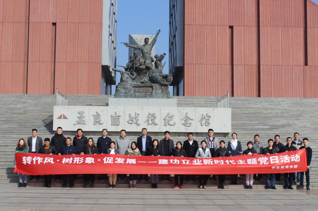 为进深入学习贯彻习近平新时代中国特色社会主义思想和党的十九大精神,弘扬爱国奋斗精神,进一步加强师德师风建设,11月23日至24日,学生处党支部组织全体党员赴临沂开展“转作风·树形象·促发展——建功立业新时代”主题党日活动。