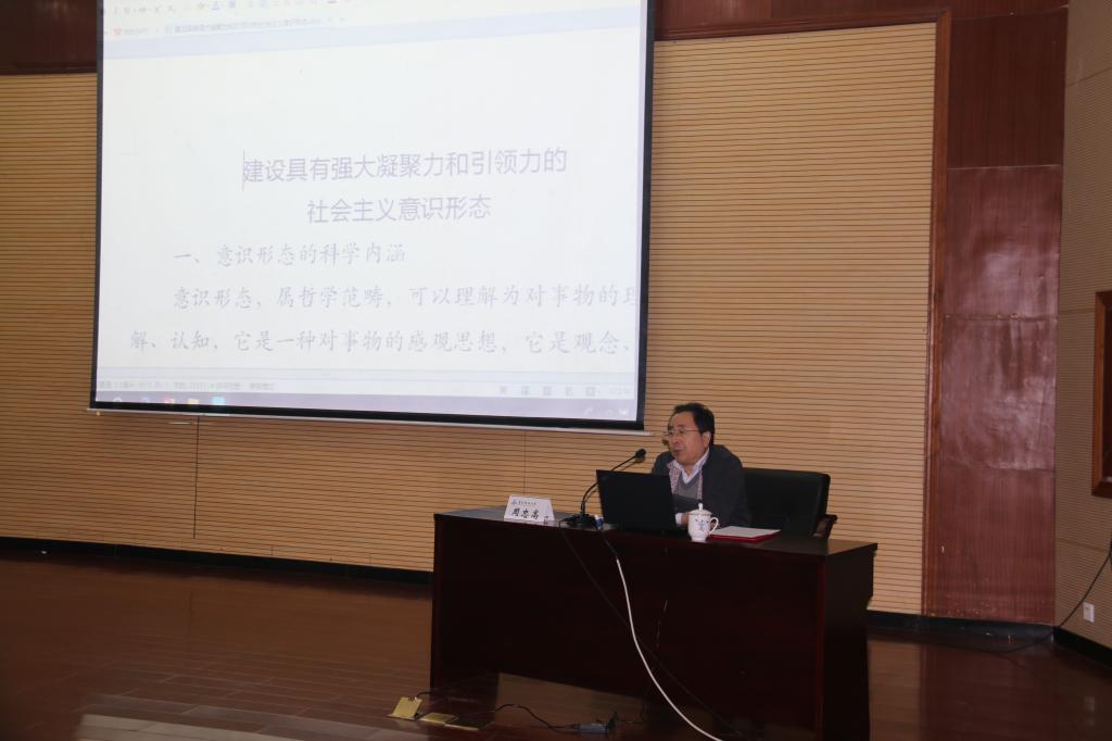 随后,周忠高教授为与会人员作了题为《建设具有强大凝聚力和引领力的社会主义意识形态》的报告。他从什么是意识形态、意识形态的起源与发展、加强意识形态工作的重要性等几个方面作了介绍,并分析了我国当前在意识形态领域面临的严峻形势与挑战。他希望辅导员老师深入学习贯彻落实习近平新时代中国特色社会主义思想和在全国教育大会上的讲话精神,不断加强我们党在意识形态工作领域的领导,通过理念创新、手段创新、基层工作创新,积极探索破解当前大学生意识形态工作难题的新举措新方法,增强我们意识形态的凝聚力和引领力,不断开创大学生意识形态工作的新局面。