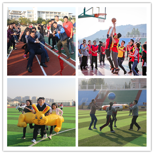 比赛由团体项目和个人项目组成。首先进行的团体项目是篮球对抗赛,比赛双方为崂山校区代表队和四方、高密校区代表队,进过半个小时激烈的角逐,比分交替领先,最终崂山校区代表队以37:33的微小优势赢得比赛。在随后进行的拔河比赛、龟兔赛跑、雷霆战鼓等团体项目中,参赛队员精神饱满,斗志昂扬,顽强拼搏,奋勇争先,在欢声笑语中感受运动的魅力和团队的力量。