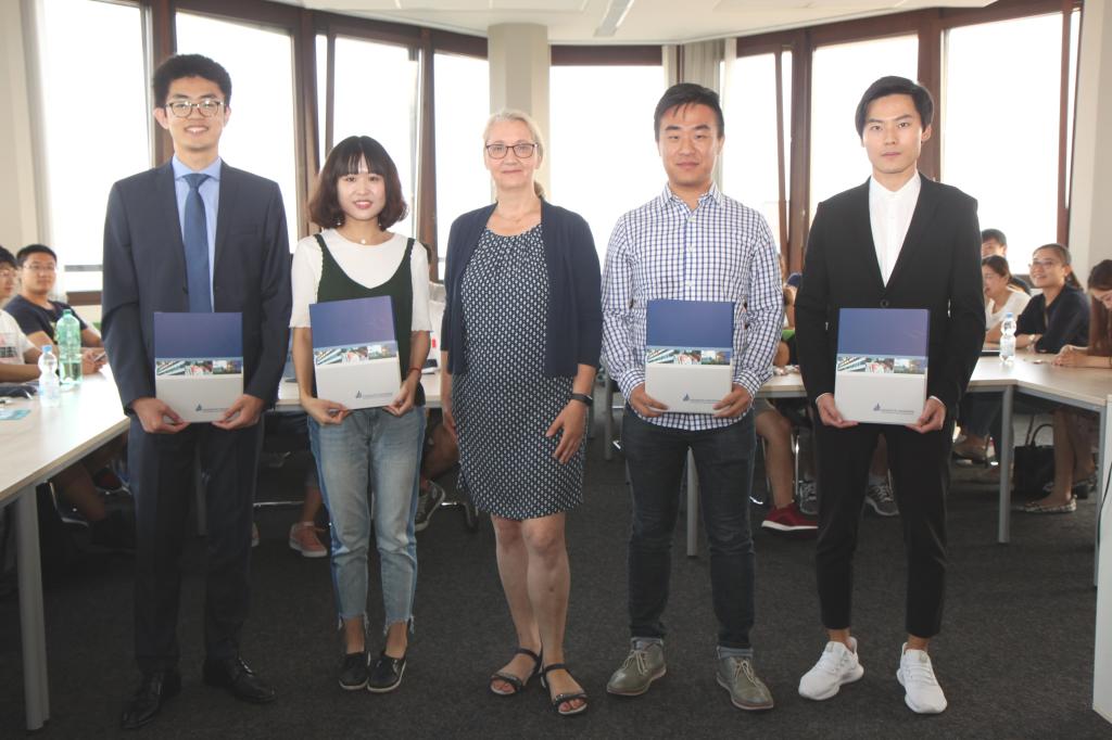 帕德博恩大学机械专业合作项目负责人Zimmer教授为他们颁发了奖学金证书。学生们表达了对伟德国际1949官网和帕德博恩大学的感谢之情,使得自己能够非常快的融入到德国的学习和生活中,并取得优异成绩。