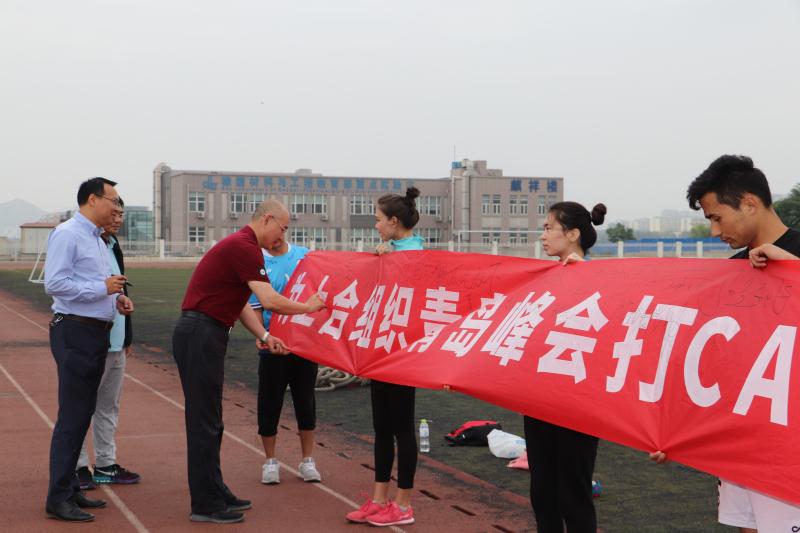 比赛开始前,副校长陈克正、相关部门负责人及参赛少数民族学生纷纷在印有“为上合组织青岛峰会打call”的横幅上签字,预祝上合组织青岛峰会圆满成功。