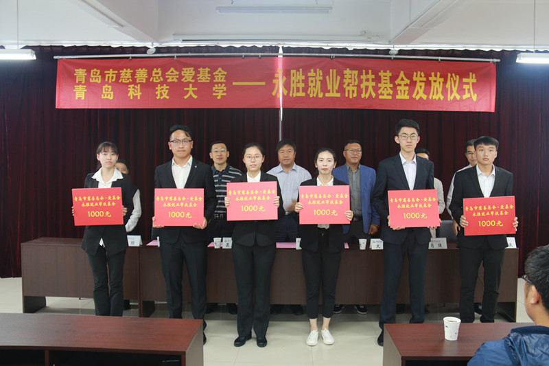 5月29日下午,学校在崂山校区举行2018“永胜就业帮扶基金”发放仪式。副校长李伟年,青岛市慈善总会爱基金常务理事、名誉会长文哲校友工作办公室(教育发展基金会)主任聂广明,学生处处长肖强,云南玉溪农业职业技术学院魏琼老师以四方、崂山校区50名受助应届毕业生参加了此次仪式。仪式由学生处副处长曹永俊主持。