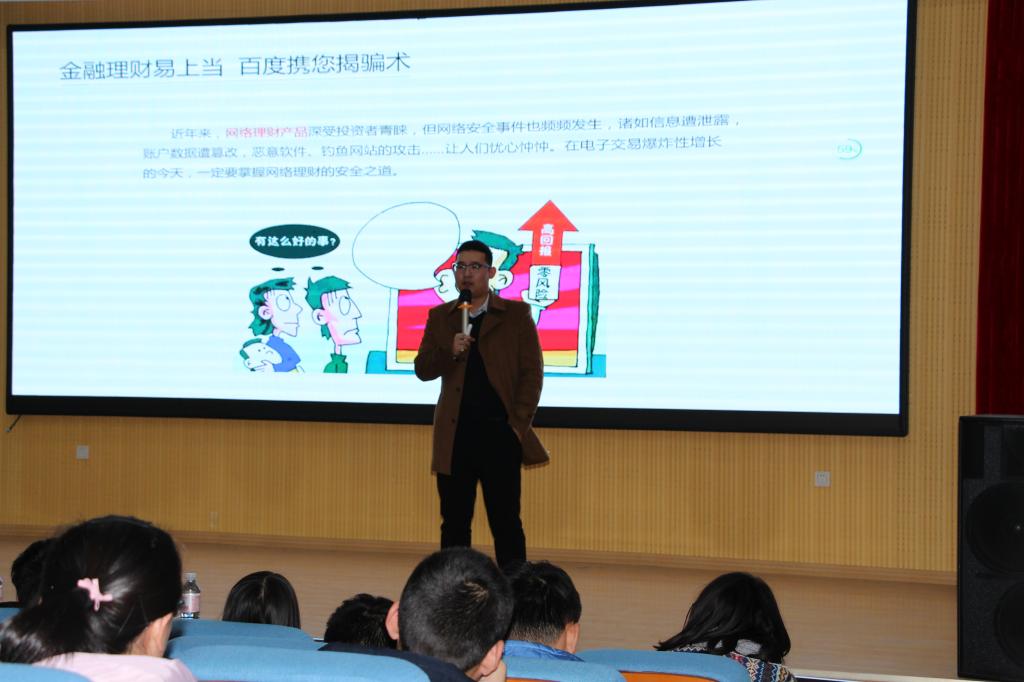 李方超从百度内容安全中心简介、网络信息环境、网络安全基础知识、远离网络暴力、网络诈骗案例、网络诈骗防骗招式等方面向同学们进行了详细讲解,他指出,互联网日趋深度的融入我们的生活,带给我们更丰富体验和可能的同时,也蕴藏着“危机”,校园贷风波、兼职招聘诈骗、助学贷诈骗事件、传销组织以及其他涉黄、涉赌等网络不良信息危害大学生身心健康,甚至导致上当受骗,走向违法犯罪的道路。随后,详细介绍了百度内容安全中心,致力于建立互联网安全新生态,旨在通过采用系统巡查和人工巡查并举的手段,维护互联网清朗环境。于海燕从百度(青岛)智创基地、百度人工智能发展现状等方面进行了详细介绍。她指出,百度(青岛)智创基地是一个旨在全力打造一个基于AI人工智能的全产业链创业生态圈和“创新创业创投”服务平台,大家讲述了《百度AI生态伙伴计划》。