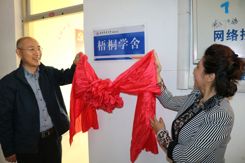 为切实贯彻高校思政工作会议精神,使学生的教育管理工作更加贴近学生,让辅导员成为学生的“身边人”,校区经过充分的规划设计和建设,位于学生公寓的五间“梧桐学舍”于10月12日下午在学生公寓正式揭牌。副校长陈克正、校区领导梁树清、官杰及全体辅导员参加了揭牌仪式