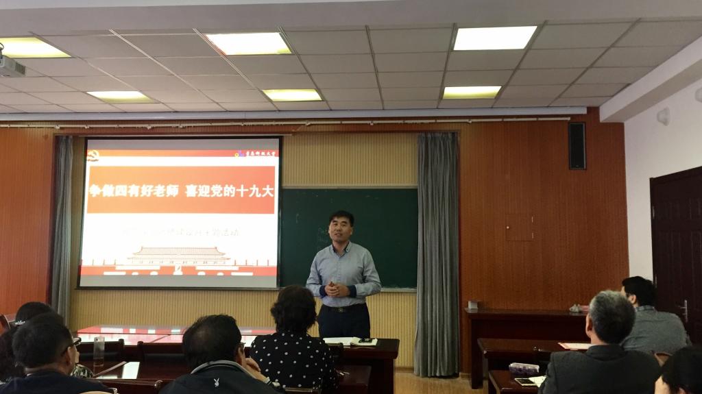 为贯彻落实学校第十六届师德建设月活动精神,引导学院教师在新形势下自觉提高师德修养和教育教学能力,10月10日下午,经管学院在419会议室以“争做四有好老师喜迎党的十九大”为主题,对学院师德建设月进行安排部署。