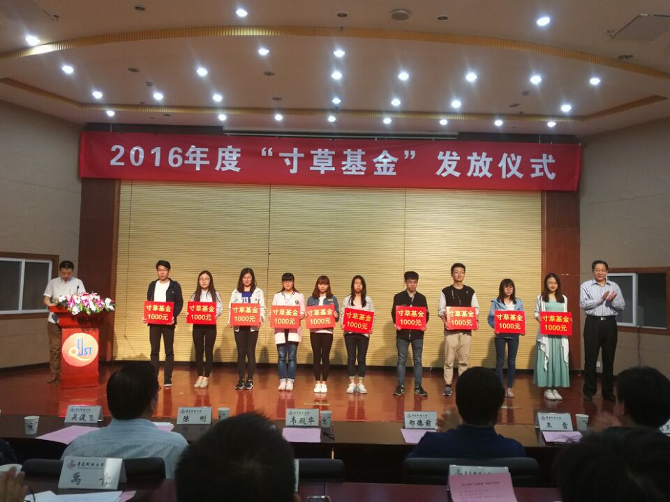 “寸草基金”是教育发展基金会2015年正式设立的公益项目,该项目资金主要来源于教师和校友的自愿捐赠,定向用于资助家庭经济困难在读学生。2016年“寸草基金”共接受来自机关部门、科研院所和学院的86名老师和多名校友的捐赠,捐赠总额124900元,资助在校家庭经济困难学生100人。