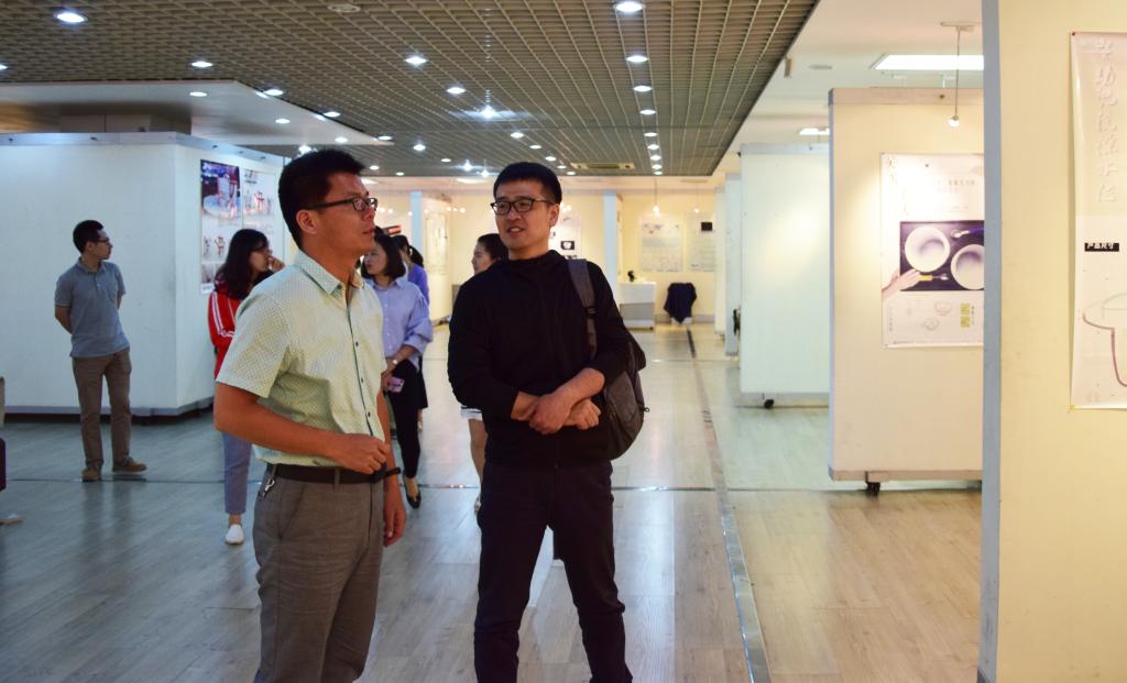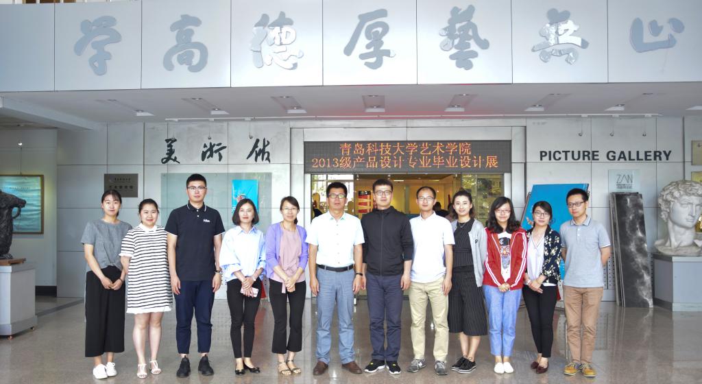 座谈会后,卜晨光一行参观了艺术学院分团委和美术馆2013级产品设计专业毕业生作品展,并合影留念。