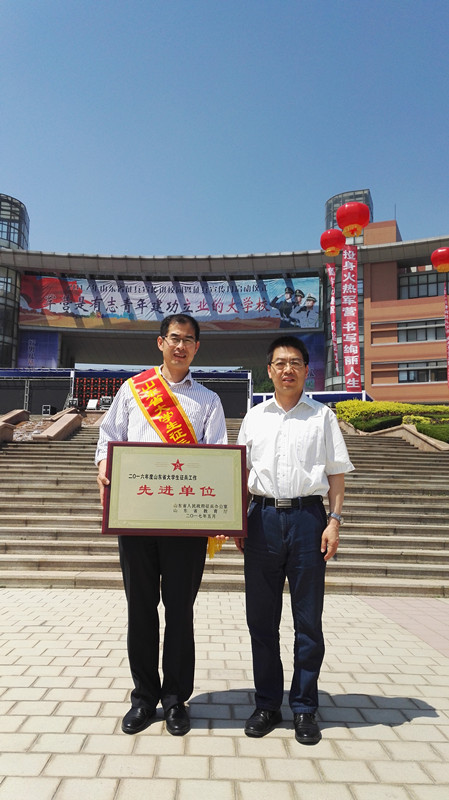 5月18日,山东省征兵宣传进校园暨征兵宣传月启动仪式在山东建筑大学举行,会议2016年度全省大学生征兵工作进行了总结和表彰,并对2017年大学生征兵工作进行了部署。伟德官网以细致有效的征兵宣传教育、动员和组织工作成为青岛市唯一荣获2016年度山东省大学生征兵工作先进单位”的高校。副校长吕万翔代表学校参会并领奖。