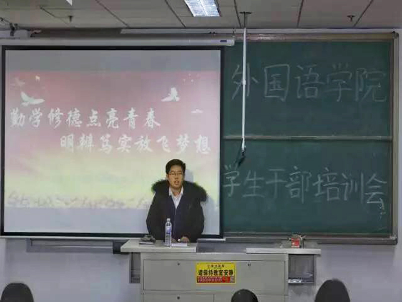 为进一步加强学生干部队伍建设,不断提高学生干部素质,贯彻落实习近平总书记系列重要讲话精神, 3月21日下午,外国语学院组织召开了“对焦‘五有’,建功青春”学生干部培训会,并向所有学生干部发出了建功青春的号召,希望同学们能够怀有责任和担当,潜心学业与创新,在学校创建“五有”高水平大学的过程中争做最美外院人。会上,省学联驻会执行主席、校学生会主席于超从学生干部工作与学习关系的把握、学生干部应具备的基本素质,以及如何做“五力六有”的学生骨干等方面与参会同学一起进行了探讨。通过本次培训,与会同学开阔了视野,为今后的工作指明了方向。