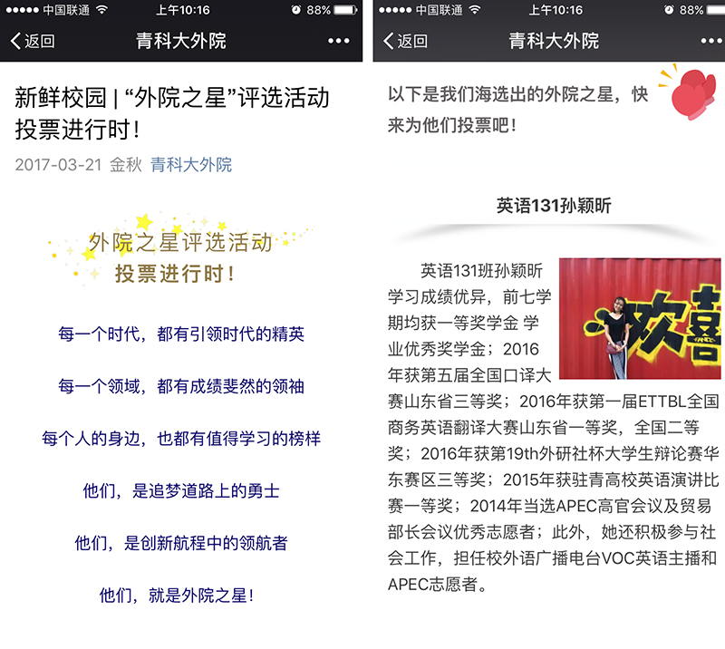 为深入学习习近平总书记系列重要讲话精神,贯彻落实团中央《高校共青团改革实施方案》内容要求,根据校团委2017工作部署,外国语学院启动了“筑梦壹柒”团学工作综合提升工程,结合青年学生新特点,组织开展了多个主题活动,助力学生成长成才。